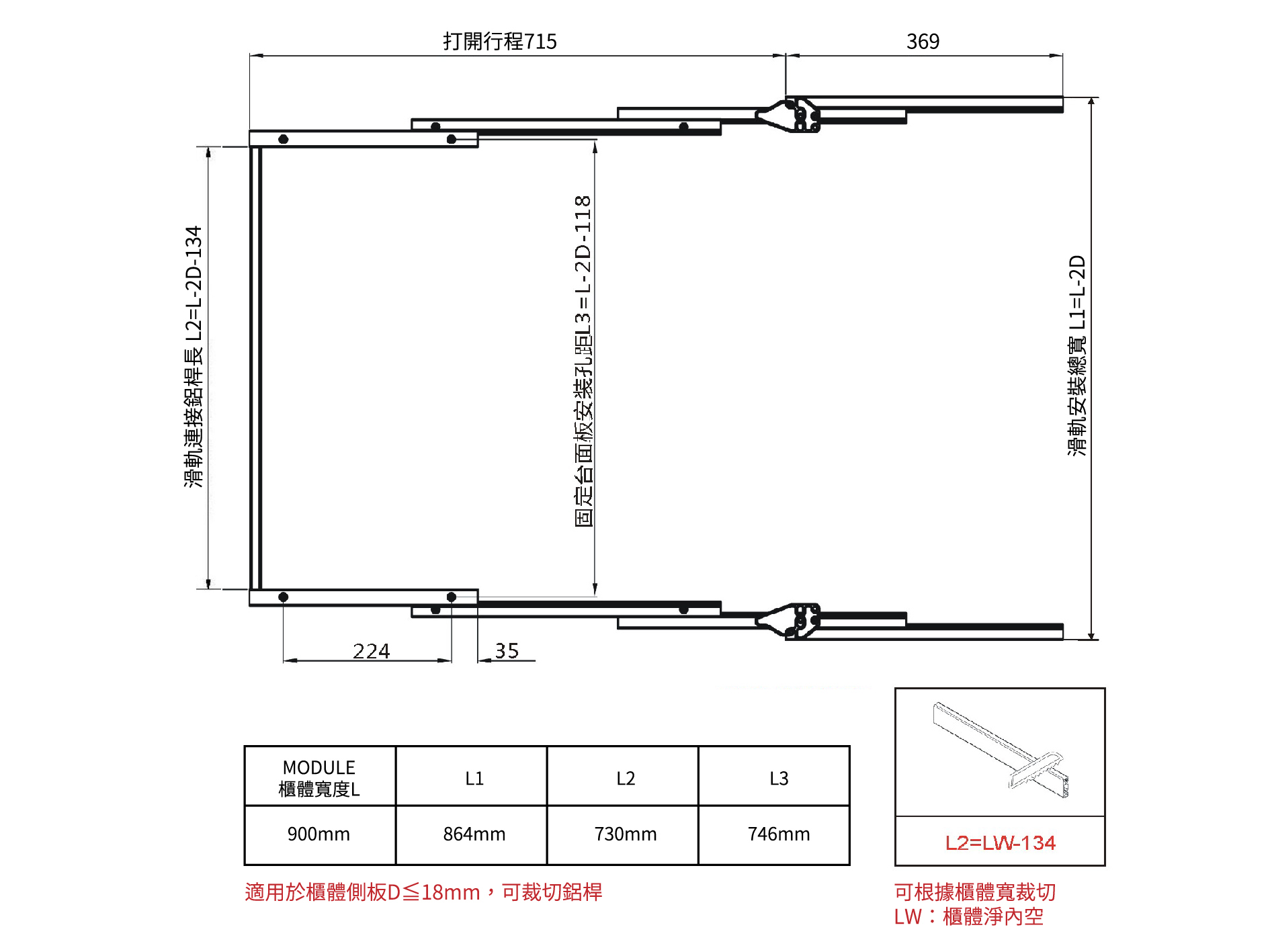 ■ 桌面寬度可由客戶自行決定;橫桿可裁切(需自行攻牙)
