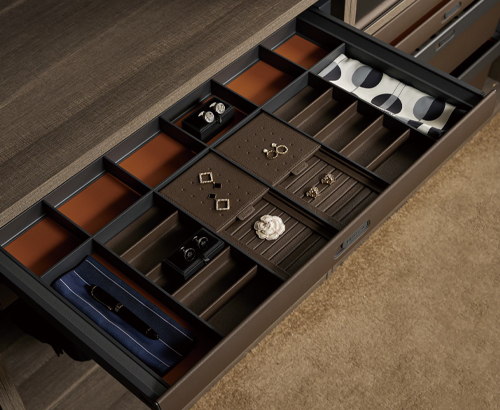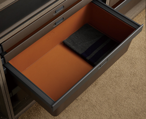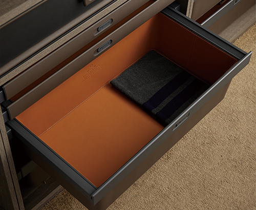 ■ 棕色面板撞色橙色皮革內底,專為精緻貼身衣物設計,呵護每一寸細膩,感受高貴與典雅的收納體驗