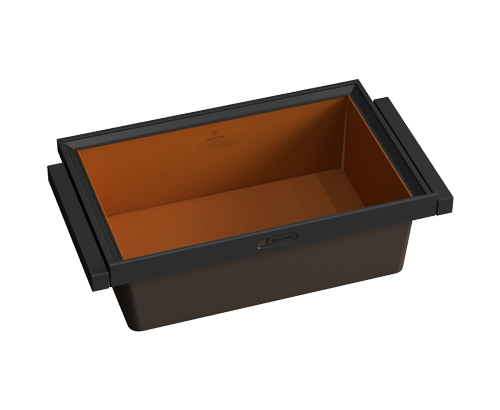 ■ 棕色皮革面板撞色橙色皮革內底,搭配幻影灰邊框,沉穩奢華