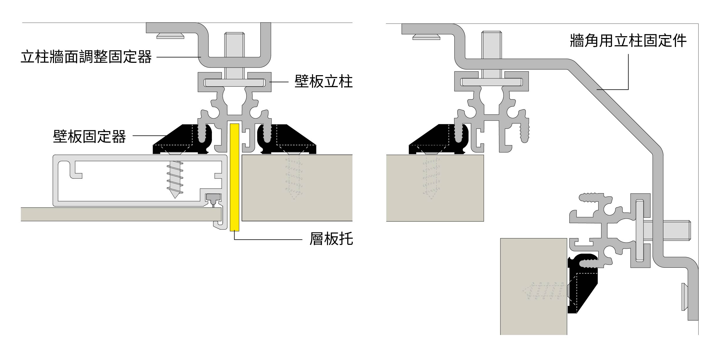 | HA.02.04 | 牆角用立柱固定件(附調整器) |