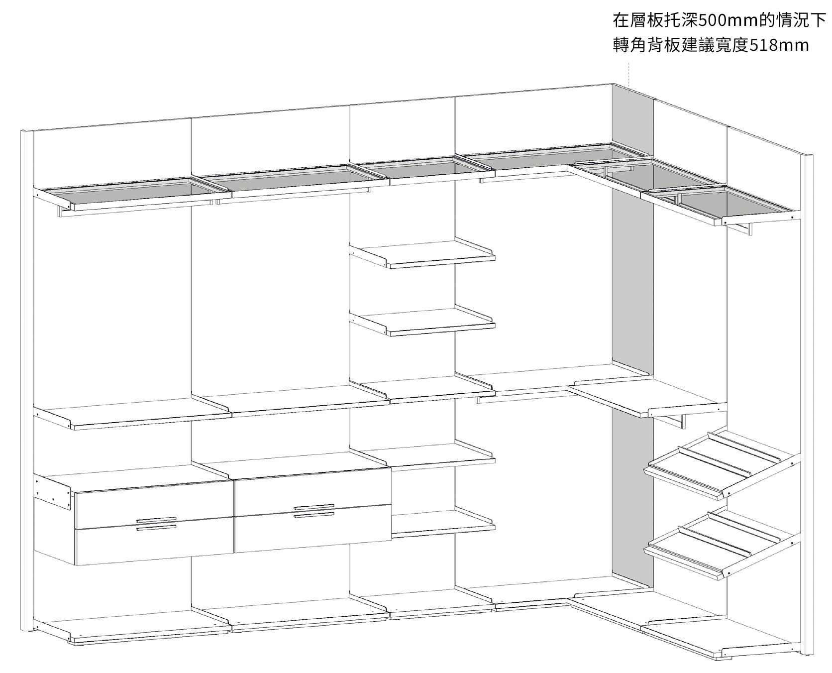 ■ 適用於開放式更衣室,無論是一字型、L型、ㄇ字型設計應用廣泛