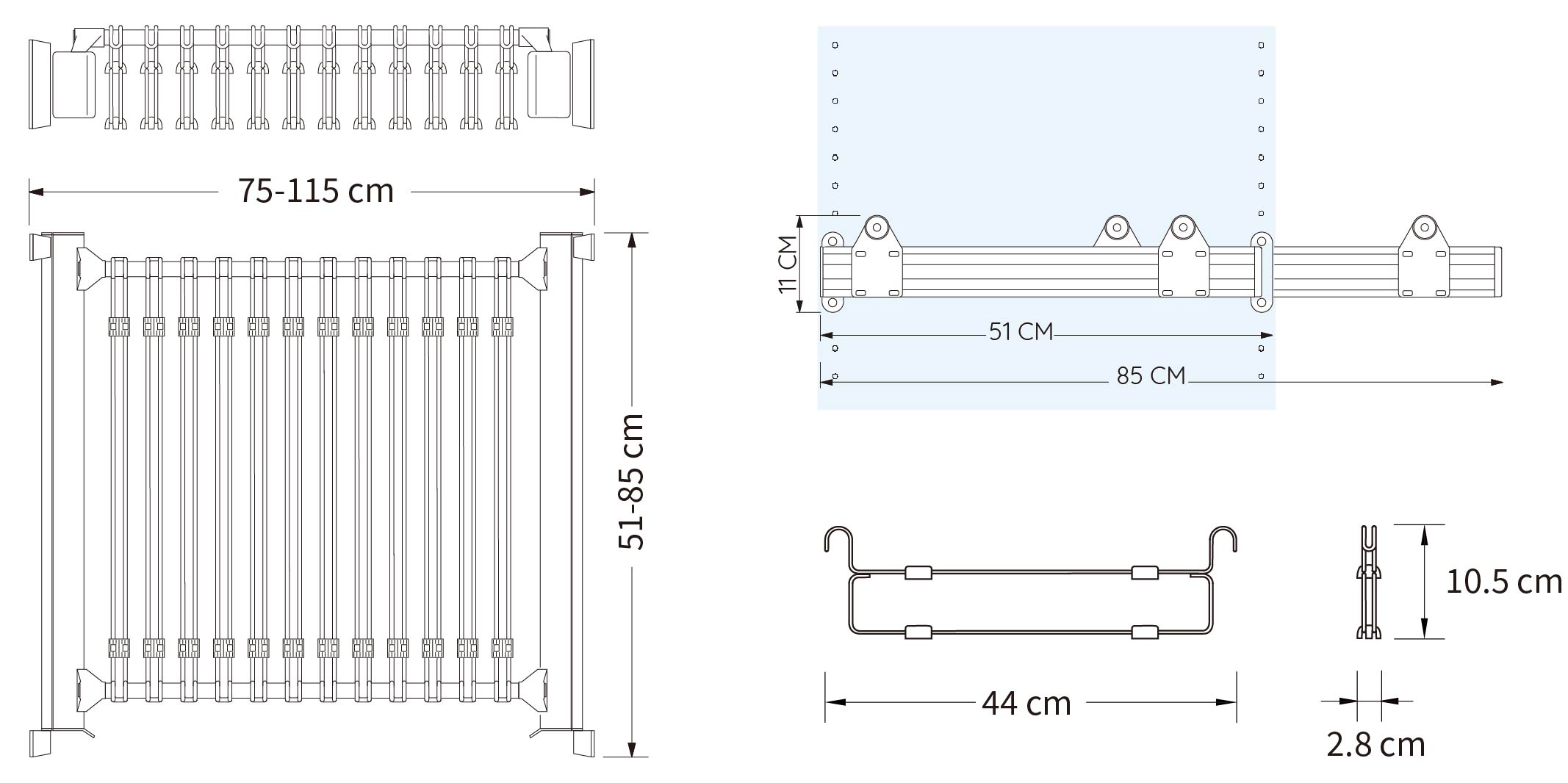 | HC.05.0501 | 褲架401;寬度75-115cm(含褲桿12支);銀色 |