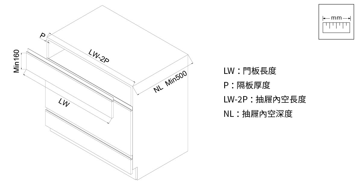 | CC.03.0601 | 希爾斯子母抽;適用櫃寬800mm |