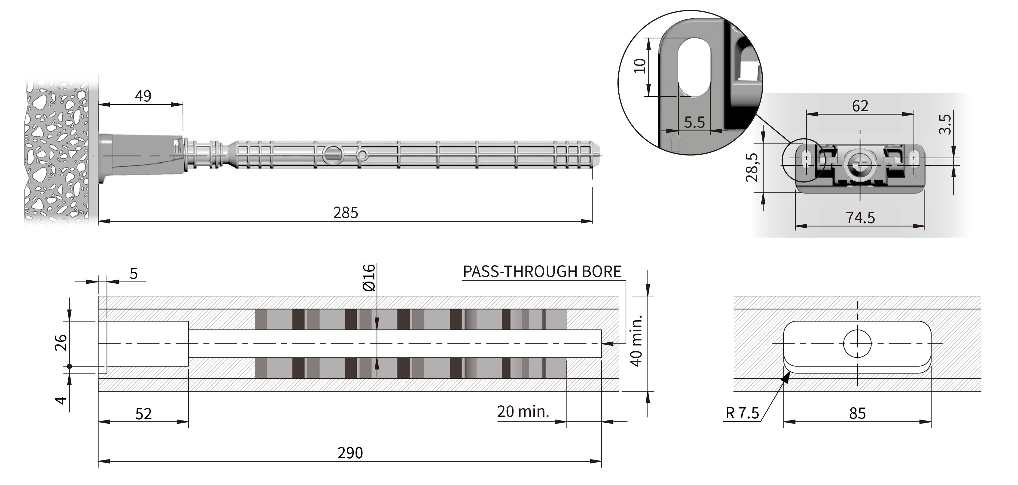 | AA.03.0104 | 隱藏式層板架TRIADE XXL PRO;長285mm |
